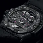 The Big Bang MECA-10 Frosted Carbon 42 mm is more than a watch—it is a feat of micromechanical innovation. With its 10-day skeletonized caliber and futuristic carbon construction, this model exemplifies Hublot’s bold philosophy of “Art of Fusion.” A striking and highly collectible timepiece for connoisseurs of modern haute horlogerie.