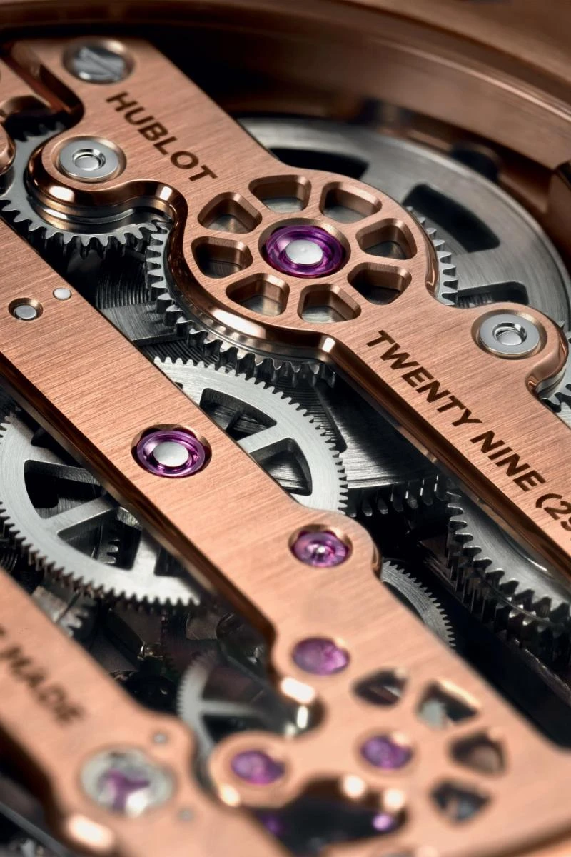 - Caliber: HUB1201, in-house manual-winding skeleton movement.