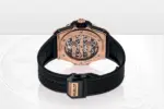 - Strap: Black structured lined rubber strap with 18K King Gold and black-plated titanium deployant buckle clasp.