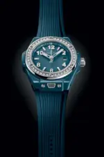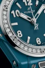 The Big Bang One Click Petrol Blue Ceramic Diamonds is an exquisite expression of Hublot’s Art of Fusion. Combining the bold appeal of high-tech ceramic with the timeless sparkle of diamonds, it offers a perfect balance of strength, elegance, and versatility. A luxury timepiece designed for women who embrace individuality and refinement.