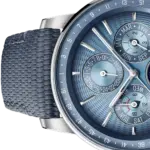with a blue openworked dial, housed in an 18K white gold case. A refined expression of