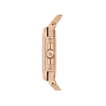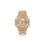 • Case: Two-part, rounded-square 18K rose-gold case, 40 mm (10–4 o’clock), thickness 8.5 mm; alternating vertical satin-brushed and polished surfaces; screw-down crown; sapphire display back.