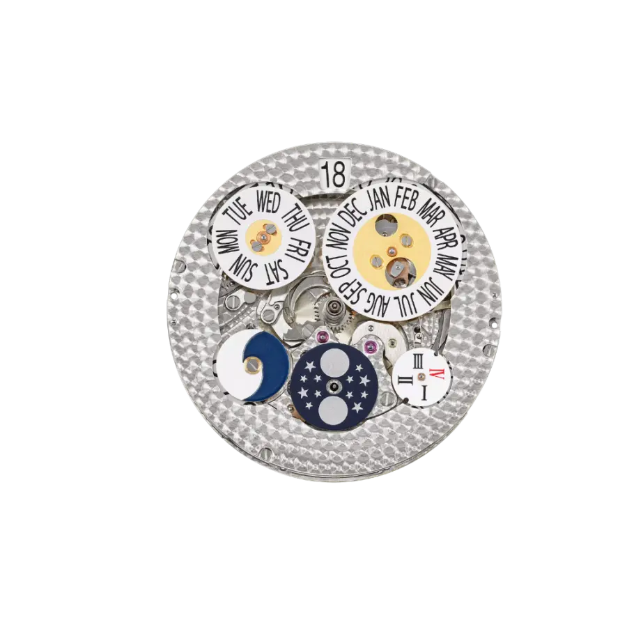 - Complication Indicators: Day/night indicator, leap-year cycle display, and additional sub-dials laid out with clarity and balance.