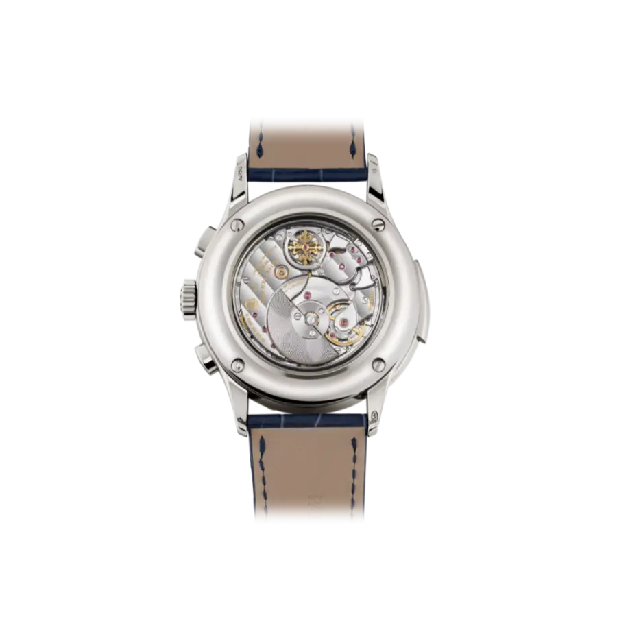 The Patek Philippe Ref. 5308G-001 is more than a watch — it is a mechanical masterpiece. With a rare combination of four grand complications — minute repeater, split-seconds chronograph, perpetual calendar, and moon-phase — it stands among the elite manifestations of haute horlogerie. Its striking ice-blue aesthetic, open lug architecture, and movement finishing make it a statement of refinement and technical audacity. For collectors and connoisseurs, it represents the apex of what Patek Philippe can achieve: combining artistry, acoustic elegance, and mechanical virtuosity into a single, wearable treasure.