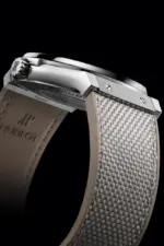 • Case: 45 mm in polished and satin-finished titanium—slim, light, and corrosion-resistant.