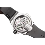 Avant-garde skeletonized design offering a dramatic view of the movement.