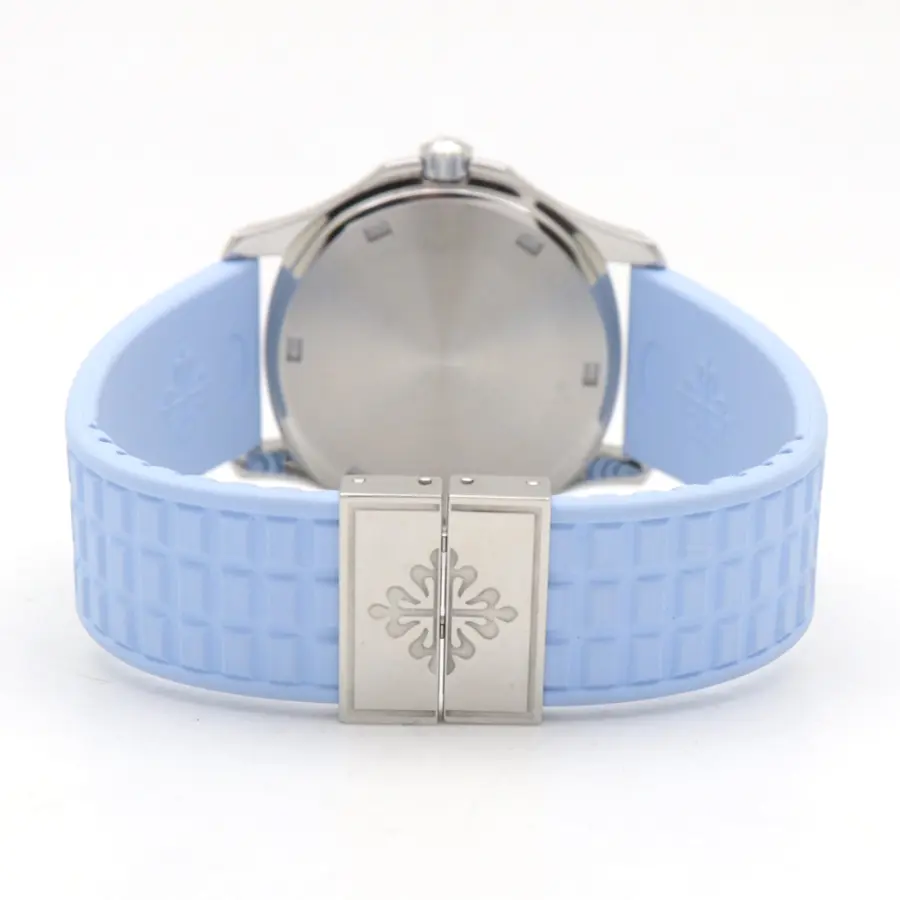 - Case: Stainless steel, 35.6 mm, with the signature rounded-octagonal Aquanaut design.