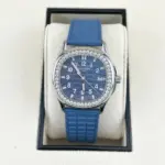 The Patek Philippe Aquanaut Luce 5067A-022 is a refined ladies’ timepiece that blends sporty character with elegant luxury. Crafted in stainless steel and featuring a vibrant blue dial paired with a diamond-set bezel, it embodies the contemporary Aquanaut spirit while offering feminine sophistication.