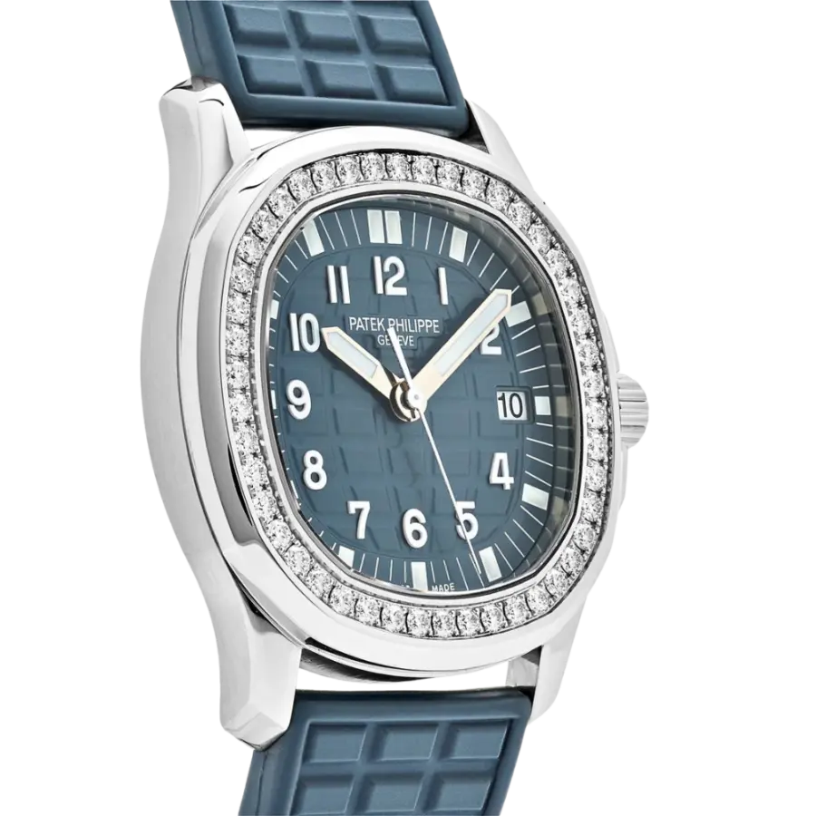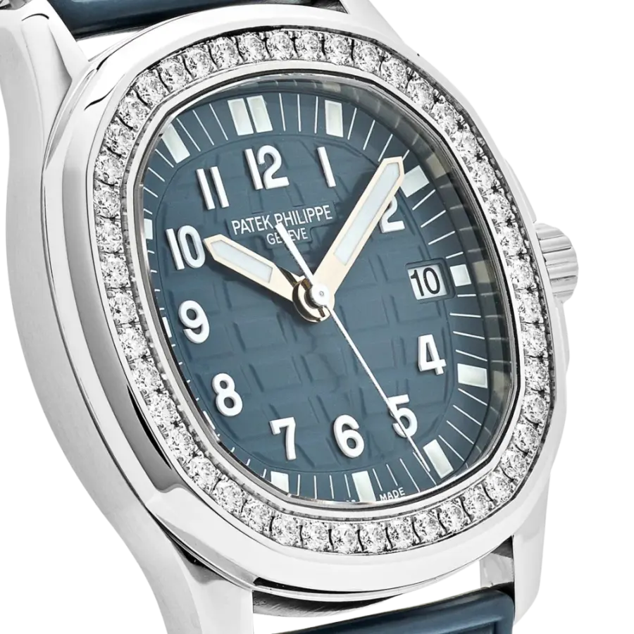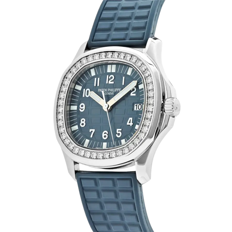 The Patek Philippe Aquanaut Luce 5067A-025 is a refined ladies’ timepiece that blends sportiness with elegant luxury. Crafted in stainless steel and highlighted by a blue dial with a diamond-set bezel, it embodies the modern Aquanaut spirit with feminine sophistication.