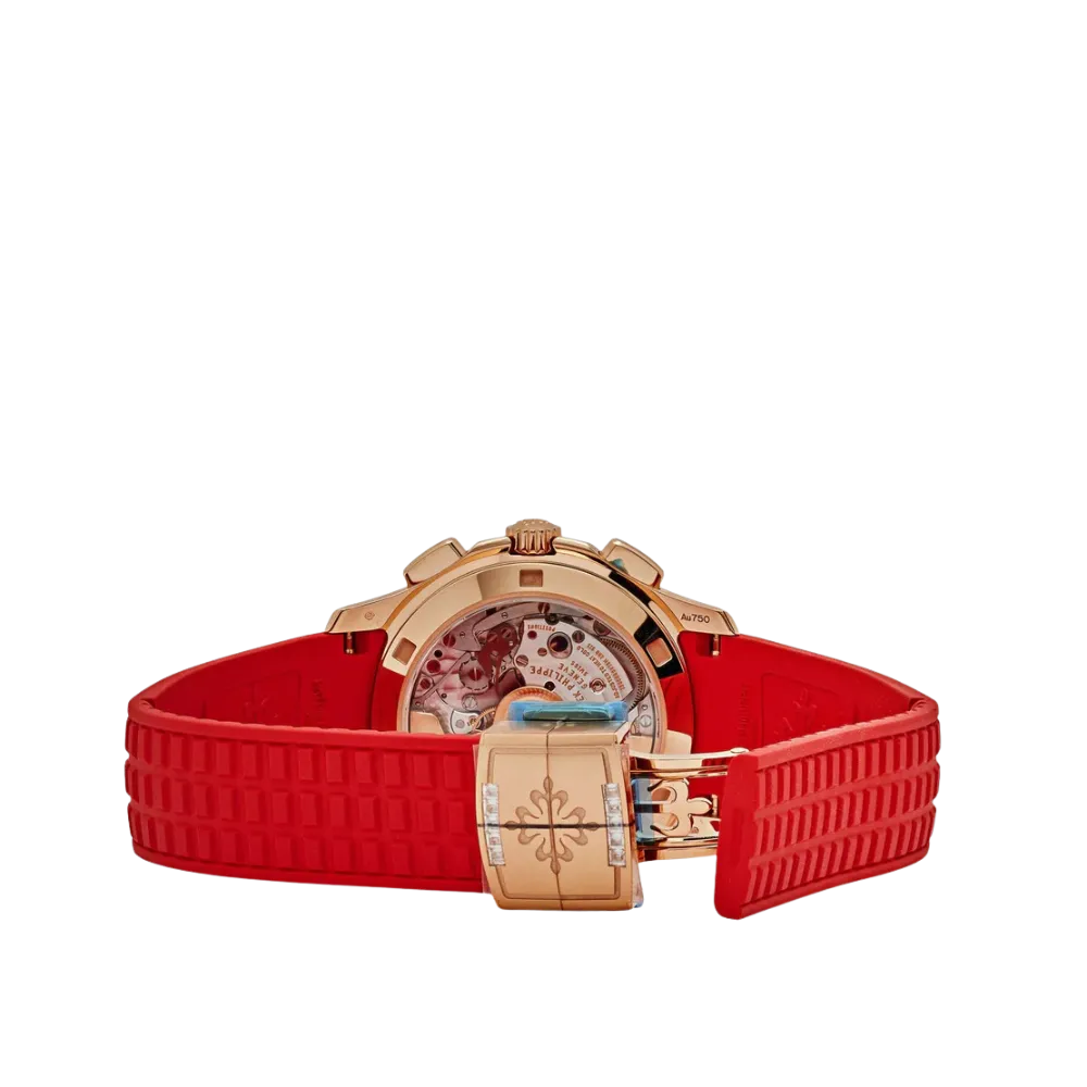 - Case: 18K rose gold, 40 mm, with signature Aquanaut contours.