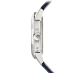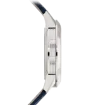 • Strap: Navy blue calfskin leather with textile pattern (primary); furnished with a patented white gold triple-blade folding clasp.
