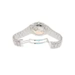 - Bracelet: Integrated platinum bracelet with a brushed finish and polished center links.