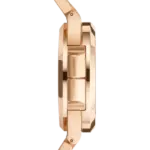 Completing the piece is a **rose gold integrated bracelet**, blending satin-brushed links with polished edges for a seamless, luxurious aesthetic. Water-resistant to **120 meters**, the 5990/1R-001 is a statement of global sophistication and horological mastery—an ultimate expression of Patek Philippe’s contemporary Nautilus line.