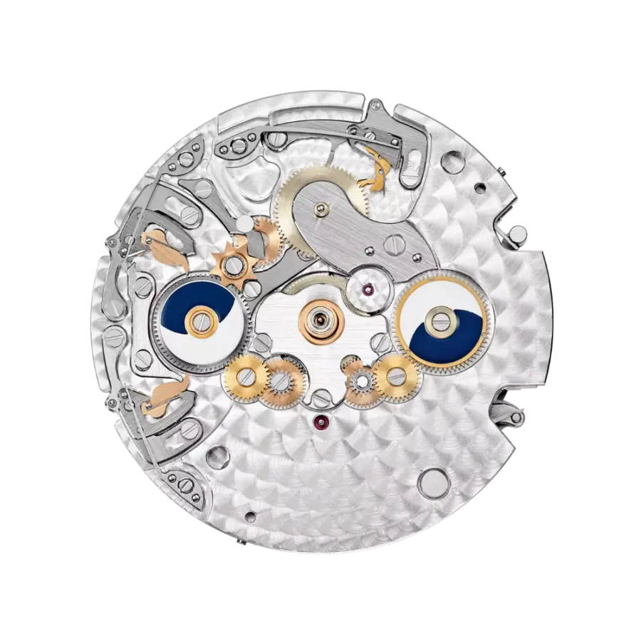 Powering this model is the **self-winding Calibre CH 28-520 C FUS**, a sophisticated in-house movement combining **chronograph**, **dual-time (Travel Time)**, and **date** functions. The chronograph employs a **column wheel and vertical clutch system** for smooth activation and wear-free precision, while the dual-time mechanism displays both local and home times with day/night indicators. The **date sub-dial** at 12 o’clock is synchronized with local time.