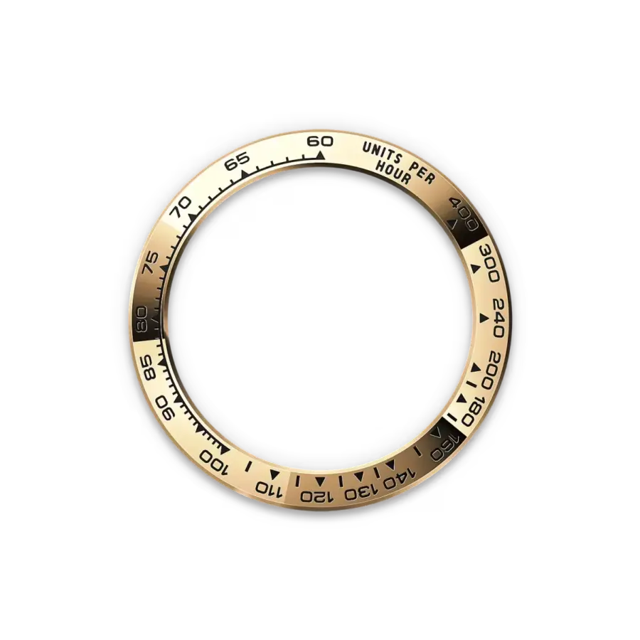 Bezel: Fixed yellow gold bezel with engraved tachymetric scale