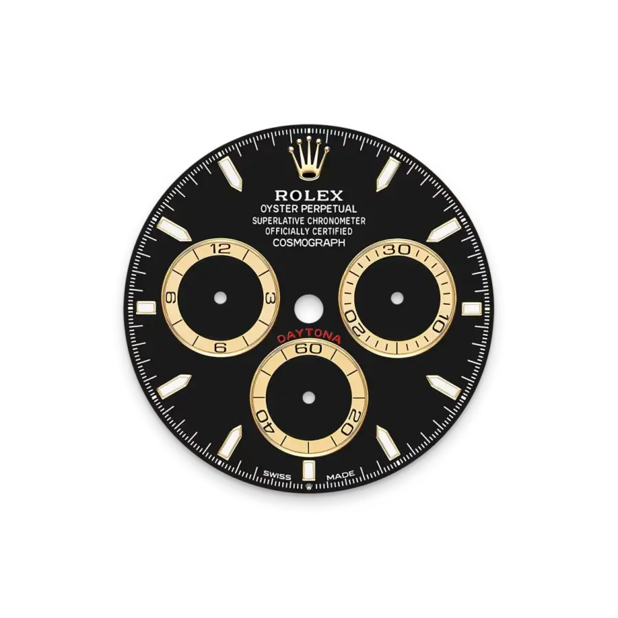 Its 40 mm Oyster case merges robust 904L stainless steel with a fixed yellow-gold bezel etched with a tachymetric scale—a hallmark of Daytona’s racing heritage. The crisp black lacquer dial with spray-coated counters displays Chromalight-coated Rolex gold hour markers and hands, ensuring excellent legibility in all lighting conditions.