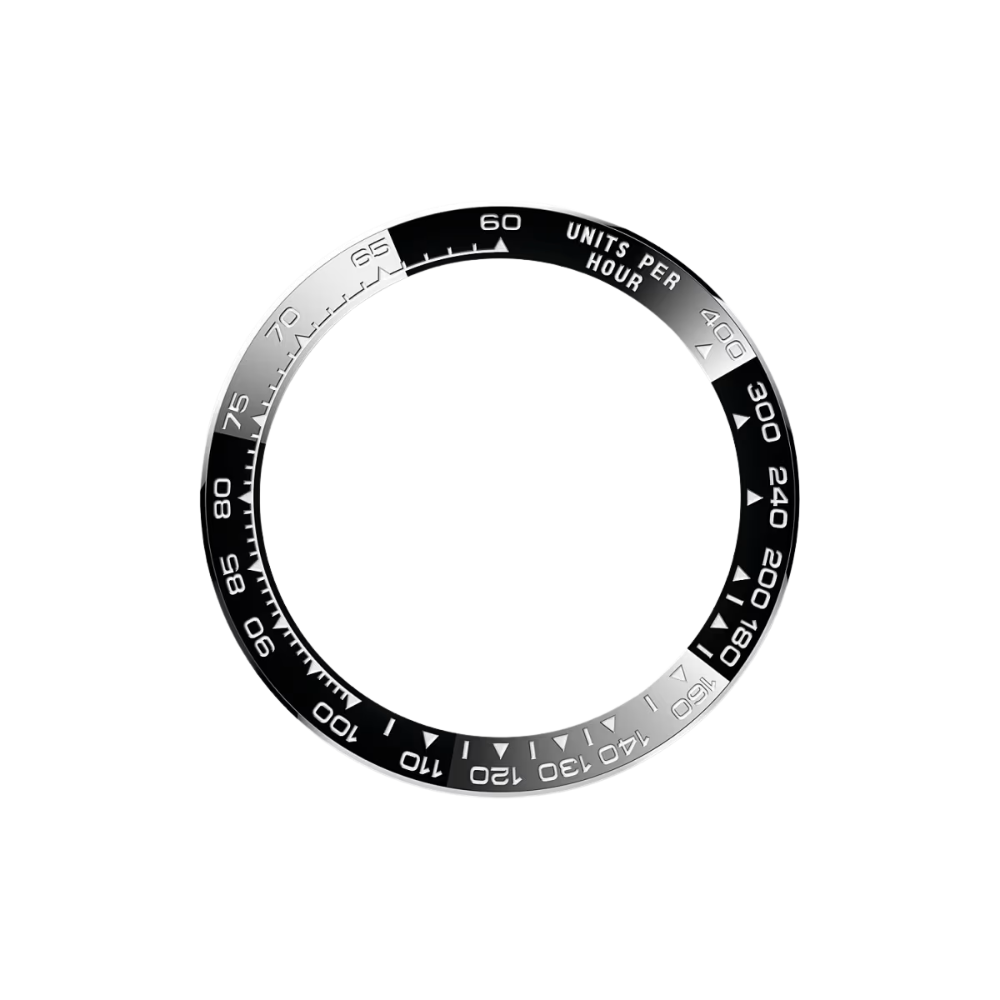 The monobloc Cerachrom bezel in high-tech ceramic offers a number of advantages: it is corrosion resistant, virtually scratchproof and the colour is unaffected by UV rays. This extremely durable bezel also offers an exceptionally legible tachymetric scale, thanks to the deposition of a thin layer of platinum in the numerals and graduations via a PVD (Physical Vapour Deposition) process. The monobloc Cerachrom bezel is made in a single piece and holds the crystal firmly in place on the middle case, ensuring waterproofness.