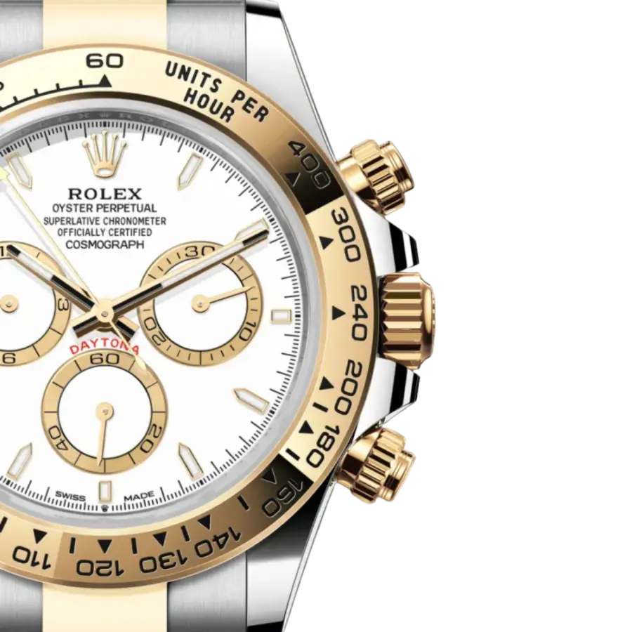 With its tachymetric scale, its three counters and its pushers, the Cosmograph Daytona was designed to be the ultimate timing tool for endurance racing drivers. The bezel features a tachymetric scale to read average speed over a given distance based on elapsed time. This scale offers optimal legibility, making the Cosmograph Daytona the ideal instrument for measuring speeds up to 400 units per hour, expressed in kilometres or miles.