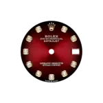 - Dial: Red ombré dial that transitions to deep black towards the edges, adorned with diamond hour markers.