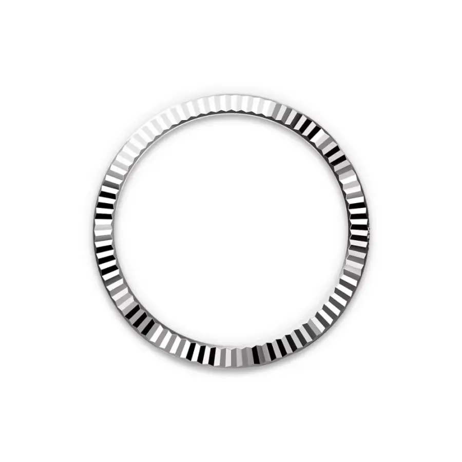 The fluted bezel, originally designed to screw the bezel onto the case for waterproofness, has evolved into a defining Rolex signature. Crafted in white gold, it signifies distinction and timeless elegance.