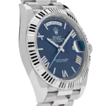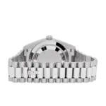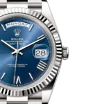 It was therefore identical to the fluting on the case back, which was also screwed onto the case for waterproofness, using specific Rolex tools. Over time, the fluting became an aesthetic element, a genuine Rolex signature feature. Today the fluted bezel is a mark of distinction, in gold on this Day-Date 40.