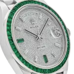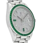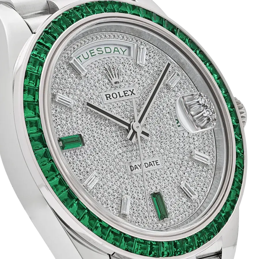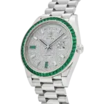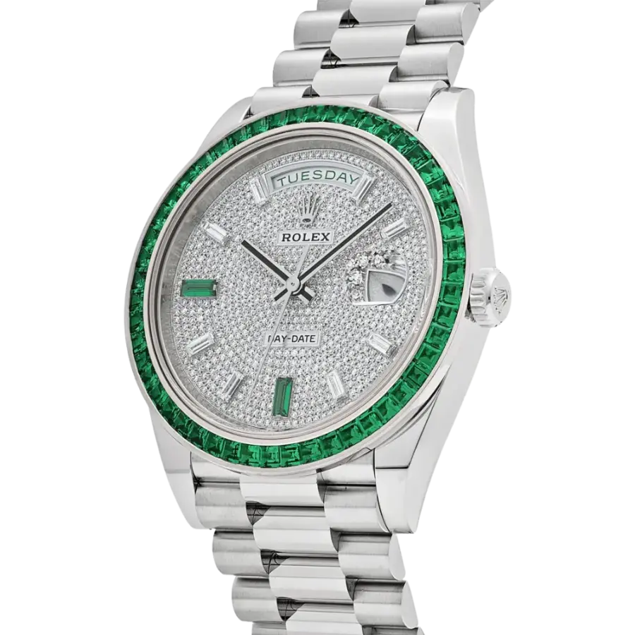 Rolex Day-Date 40 Ref. 228396TEM – Platinum with Diamond-Pavé Dial & Emerald Bezel