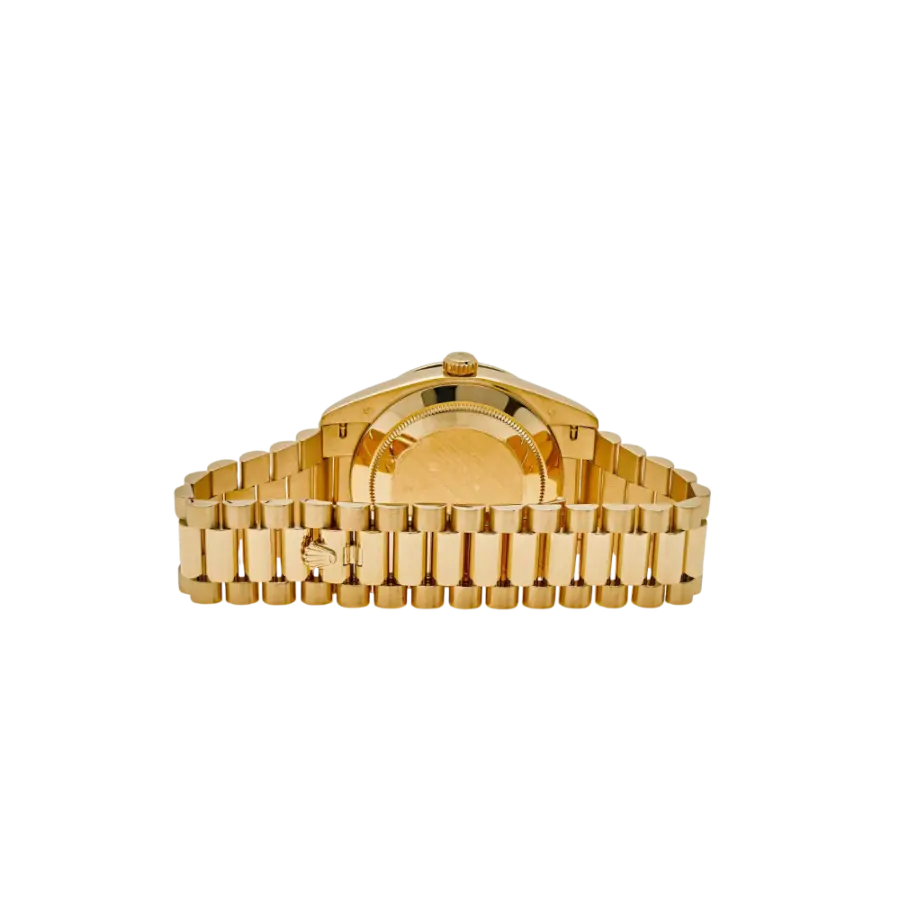 • Bracelet: Iconic President bracelet in yellow gold with semi-circular three-piece links and concealed Crownclasp.