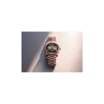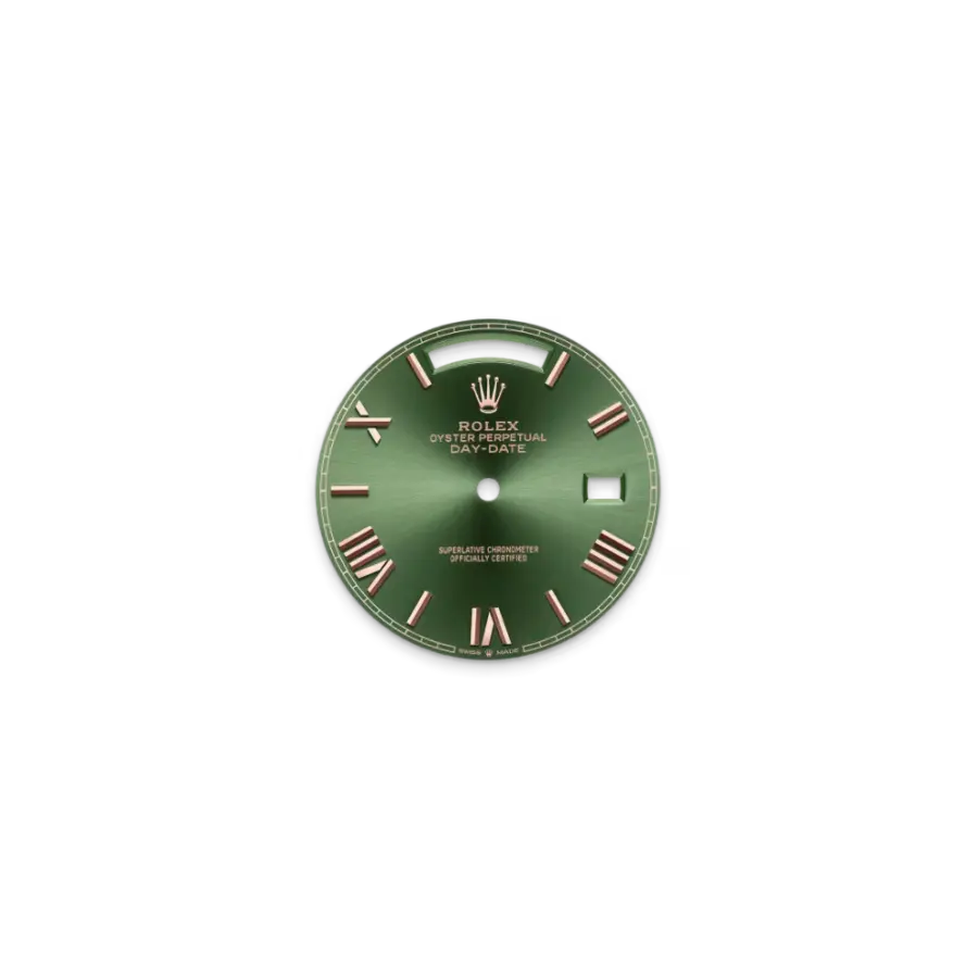 The Rolex Day-Date 40 Ref. 228235-0025 in Everose gold with an olive-green dial is a masterpiece of refinement. The patented Everose alloy preserves the beauty of its rose hue, ensuring lasting brilliance, while the fluted bezel underscores Rolex’s signature aesthetic. The olive-green dial, enhanced by its sunray finish, reflects subtle tones depending on the light, creating a captivating visual effect.
