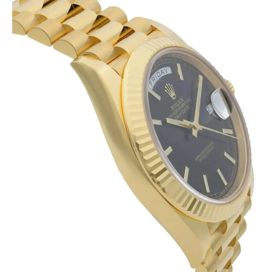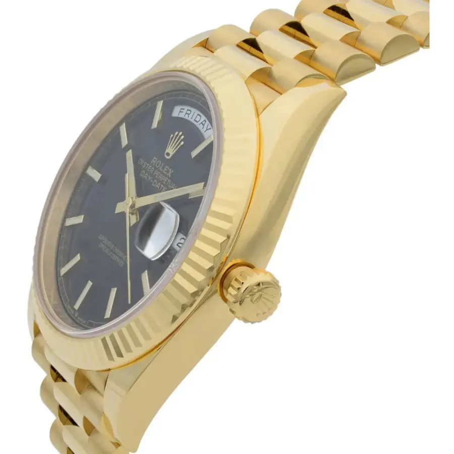 With its bold black textured dial and full 18 ct yellow-gold architecture, the Day-Date 40 228238-0007 is both discreetly contemporary and unmistakably classic. It’s a definitive statement piece—refined, precise, and designed to endure.