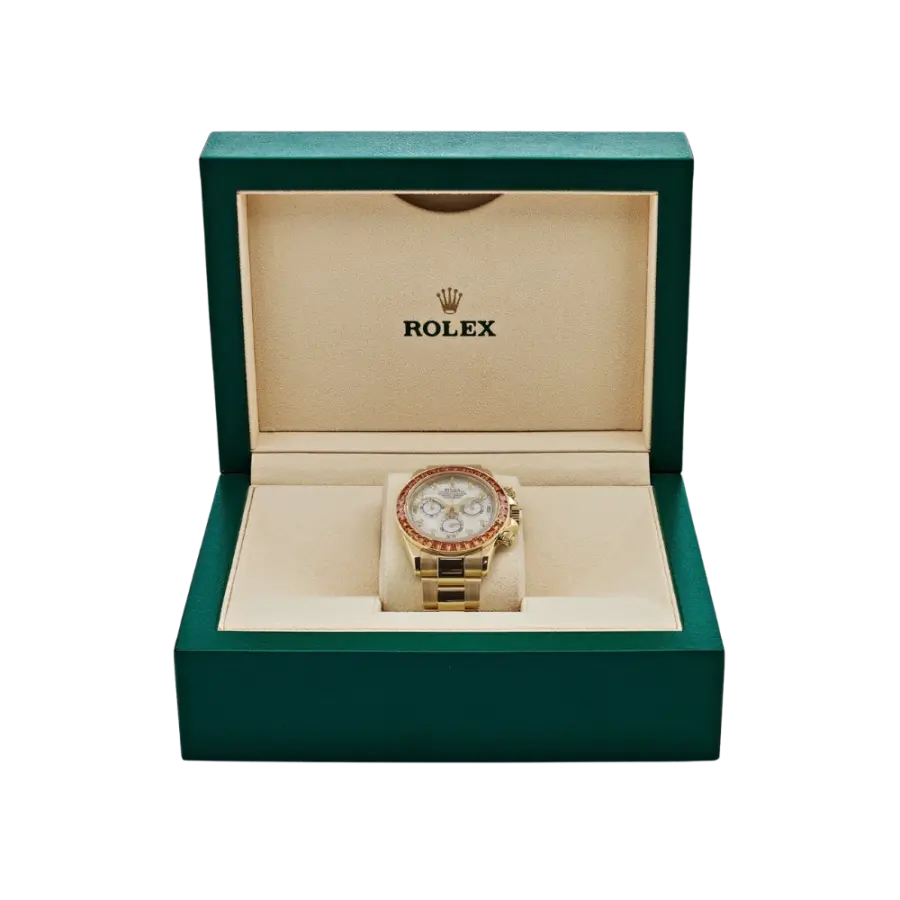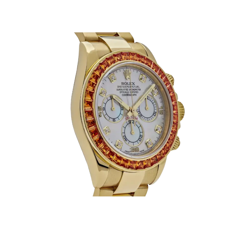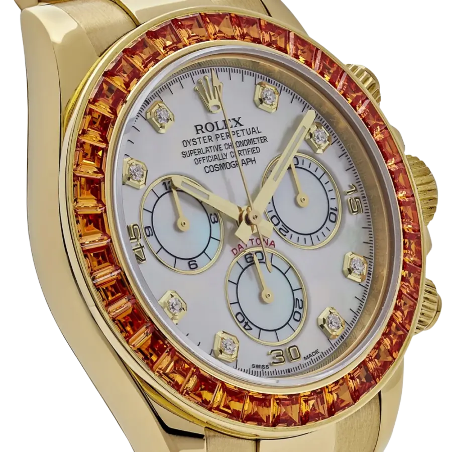 Rolex Cosmograph Daytona Ref. 116578SACO – Yellow Gold with Orange Sapphire Bezel & Mother-of-Pearl Dial