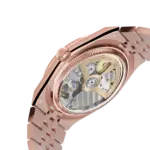- Case: 36 mm, 18 kt Everose gold with diamond-set bezel