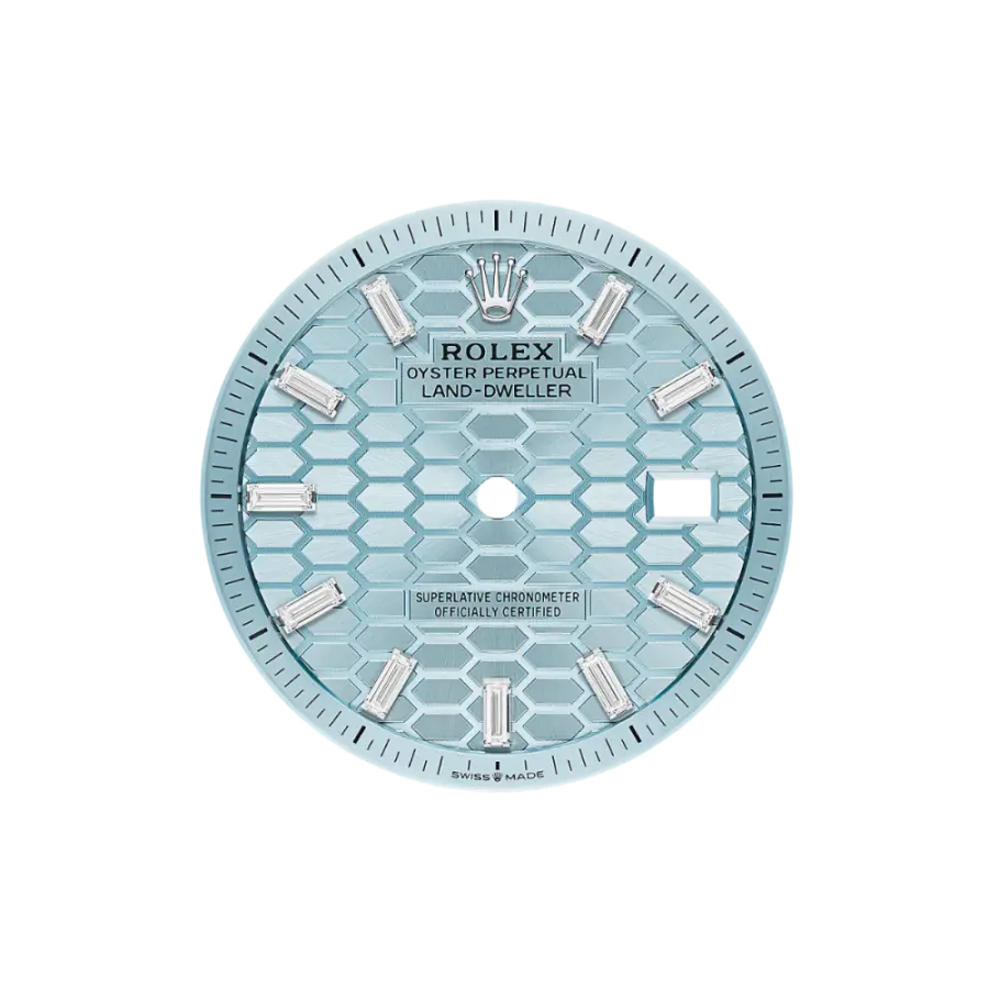 The Rolex Land-Dweller 36 mm Platinum & Diamonds Ref. 127286TBR embodies the meeting point of technical mastery and decorative artistry. With the precision of the Caliber 3235 movement, 70-hour autonomy, 100 m water resistance, and the radiance of a diamond-set bezel, this model is both practical and exquisitely luxurious. It is a distinguished choice for collectors and enthusiasts who value exclusivity, precision, and timeless elegance in a more versatile 36 mm size.