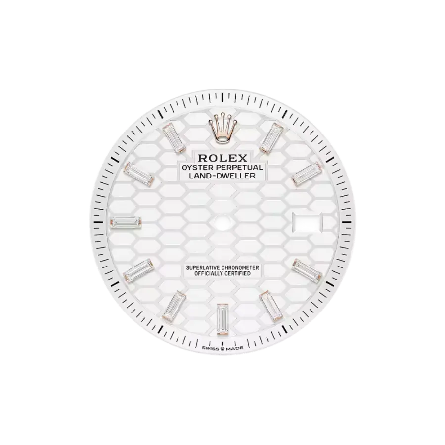 The Rolex Land-Dweller 40 mm Everose Gold & Diamonds Ref. 127385TBR merges technical precision with decorative artistry. Powered by the Caliber 3235 movement with 70-hour autonomy and protected by 100 m water resistance, it ensures performance while showcasing elevated craftsmanship through its gem-set bezel. Ideal for connoisseurs who value exclusivity, brilliance, and timeless design, this watch exemplifies the Land-Dweller spirit with a luxurious twist.