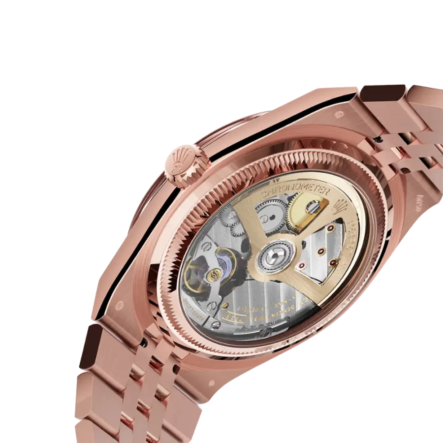 - Case: 40 mm, 18 kt Everose gold with diamond-set bezel