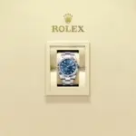 It is paired with the Oyster bracelet in Oystersteel, featuring a folding Oysterclasp and Easylink 5 mm extension, ensuring comfort and elegance on the wrist. The watch is protected by a scratch-resistant sapphire crystal with Cyclops lens and remains water-resistant to 100 m.