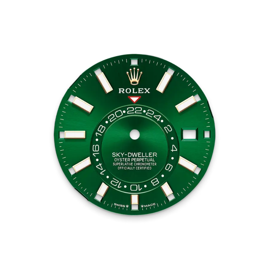 The Rolex Sky-Dweller 336938-0007 is a standout within the Sky-Dweller line thanks to its vibrant green dial, blending unique visual appeal with Rolex’s most traveler-oriented complications. With dual time zone, annual calendar, and the elegance of full gold construction, it offers both utility and collectible allure for discerning watch aficionados.
