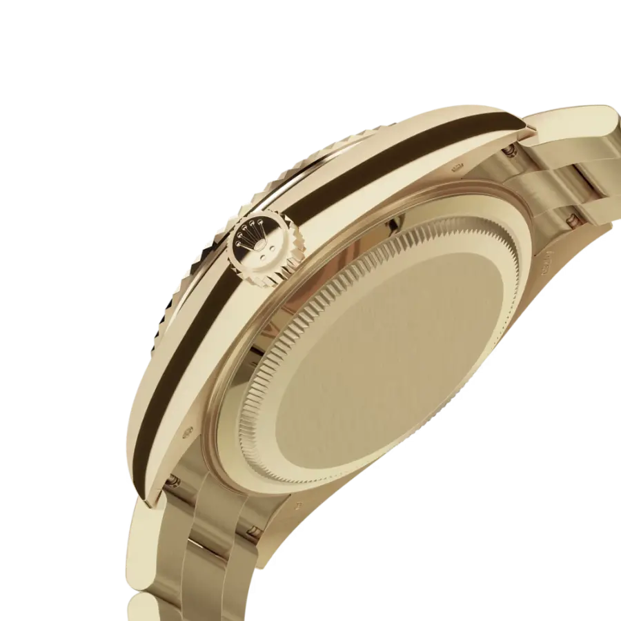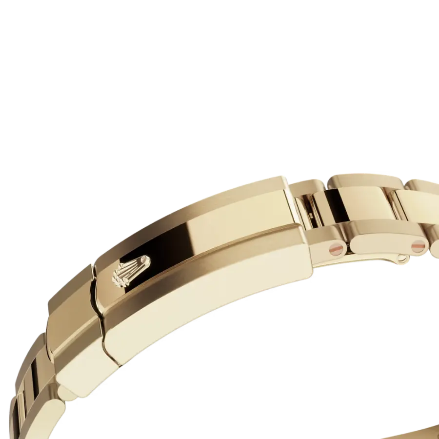 Durability meets elegance with the Oyster bracelet, crafted from solid yellow gold links, fitted with the secure Oysterclasp and the Easylink 5 mm extension system, ensuring comfort and adaptability on any occasion. Water resistance up to 100 meters (330 ft) adds practicality, making this luxurious watch suitable for both formal events and adventurous journeys.