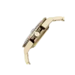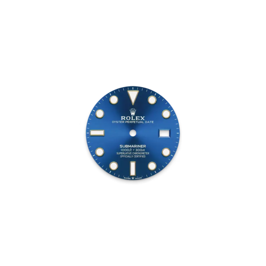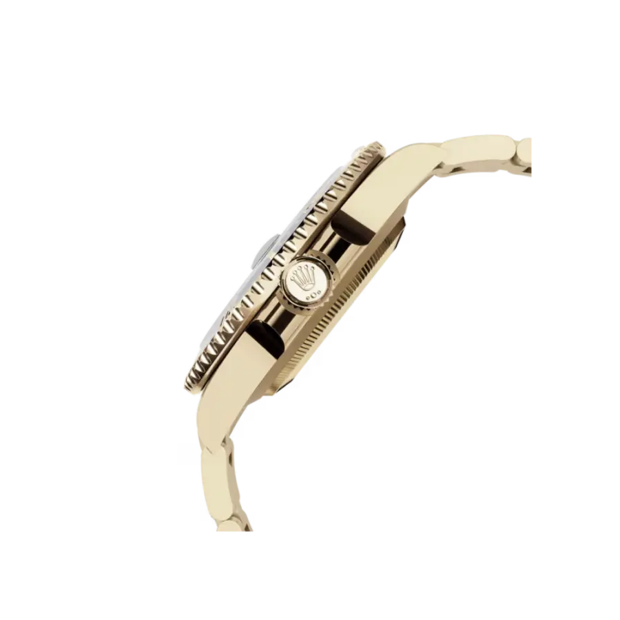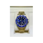 This Submariner features a 41 mm Oyster case in yellow gold, outfitted with a Triplock screw-down crown and waterproof sapphire crystal with Cyclops date magnifier. The Oyster bracelet, constructed from solid gold, offers durability and comfort, with the Oysterlock clasp for security and the Glidelock extension system for easy adjustment without tools.
