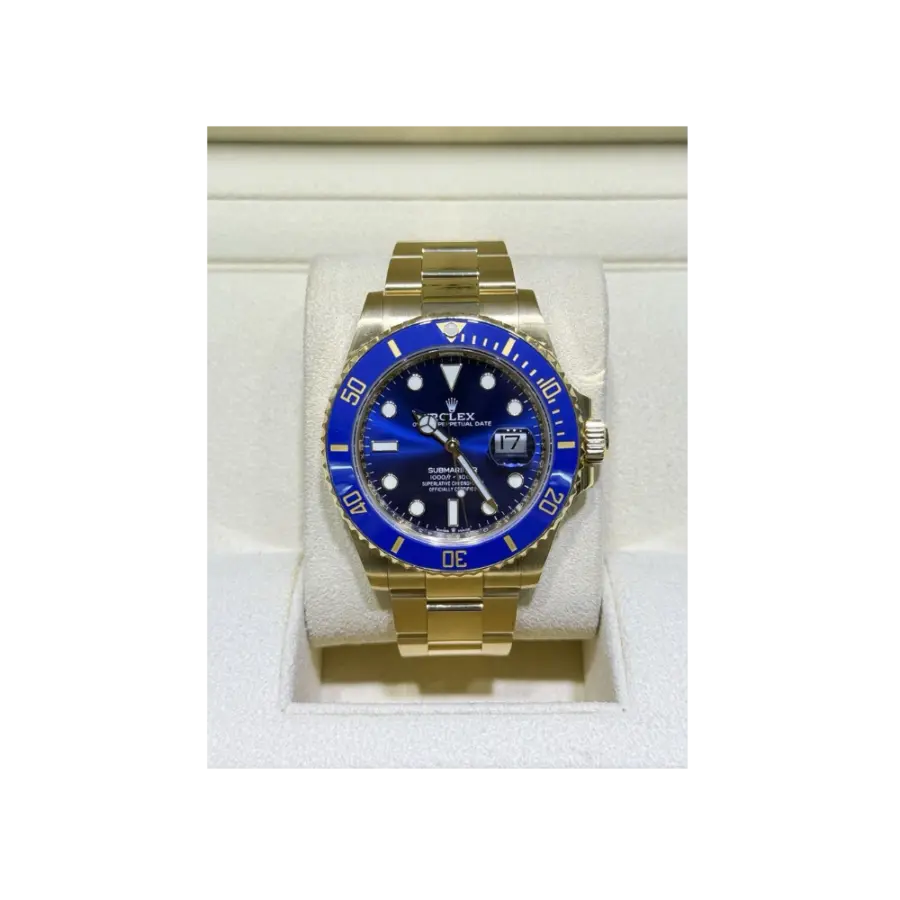 The Rolex Submariner Date ref. M126618LB‑0002 is a luxurious and iconic diver’s watch crafted in solid 18 ct yellow gold with a royal blue dial and matching blue Cerachrom bezel. Paired with a solid gold Oyster bracelet, this model delivers classic elegance with professional dive-grade functionality.