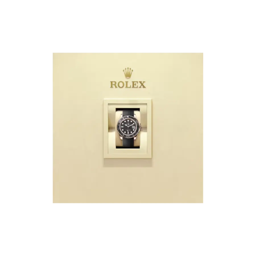 The Rolex Yacht‑Master 40 mm Ref. 126655‑0002 is a sophisticated sports watch crafted in 18 kt Everose gold, featuring a matte black Cerachrom bezel and paired with the sporty yet luxurious Oysterflex elastomer bracelet. This model marries the rugged spirit of professional yacht timers with Rolex’s refined material craftsmanship.
