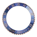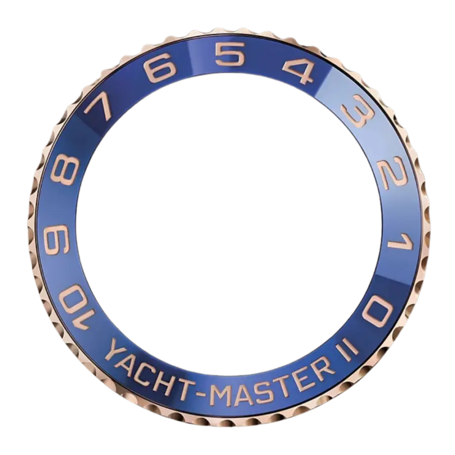 Bezel: Bidirectional Ring Command bezel in Everose gold with blue Cerachrom insert, numerals engraved in gold