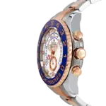 The Rolex Yacht-Master II Ref. 116681-0002 is a 44 mm regatta chronograph that blends technical innovation with nautical-inspired luxury. Combining stainless steel and 18 ct Everose gold, this bi-metal design delivers both durability and refined elegance. The centerpiece of this model is the programmable countdown timer, specially designed for regatta racing, operated through the patented Ring Command bezel system. Its sporty yet prestigious aesthetics make it equally suitable on deck or in more formal settings.