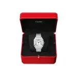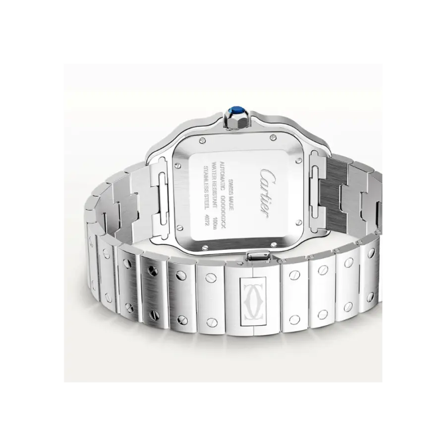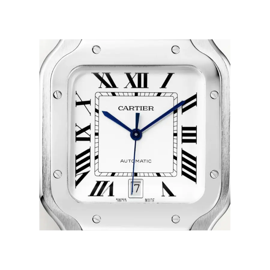 The Santos de Cartier Large is a bold reinterpretation of a legendary design, originally created in 1904 for aviator Alberto Santos-Dumont. This model, crafted in stainless steel with both bracelet and leather strap options, blends timeless elegance with cutting-edge Cartier innovation.