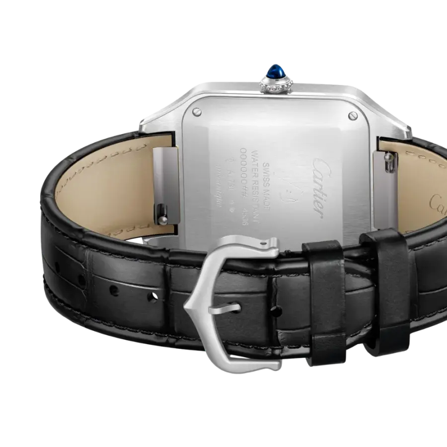 - Strap: Black alligator leather strap with interchangeable steel folding buckle.