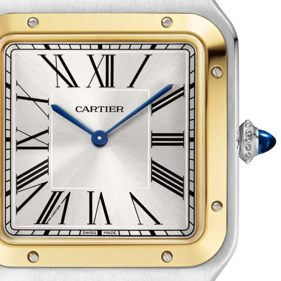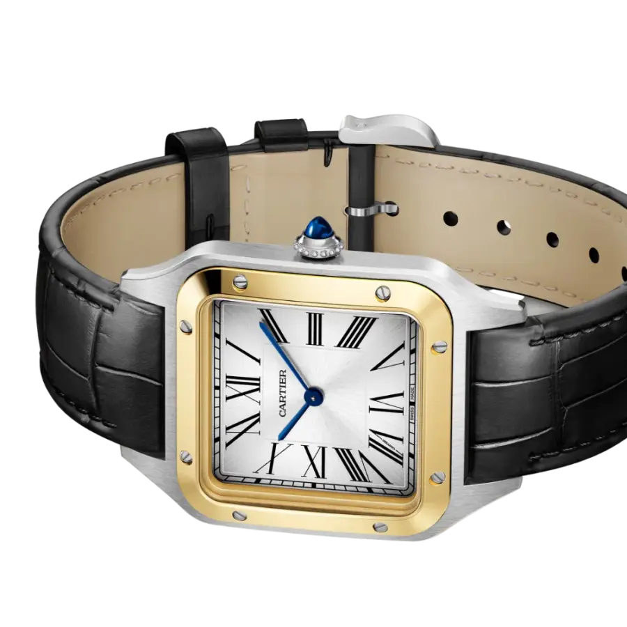 The Cartier Santos-Dumont Ref. W2SA0034 pays homage to one of Cartier’s earliest wristwatches, designed in 1904 for aviator Alberto Santos-Dumont. Featuring a two-tone case in steel and 18K rose gold, a slim profile, and a refined quartz movement, this model embodies timeless elegance and Cartier’s aviation-inspired heritage.