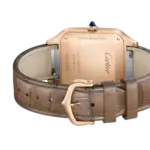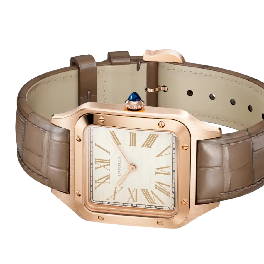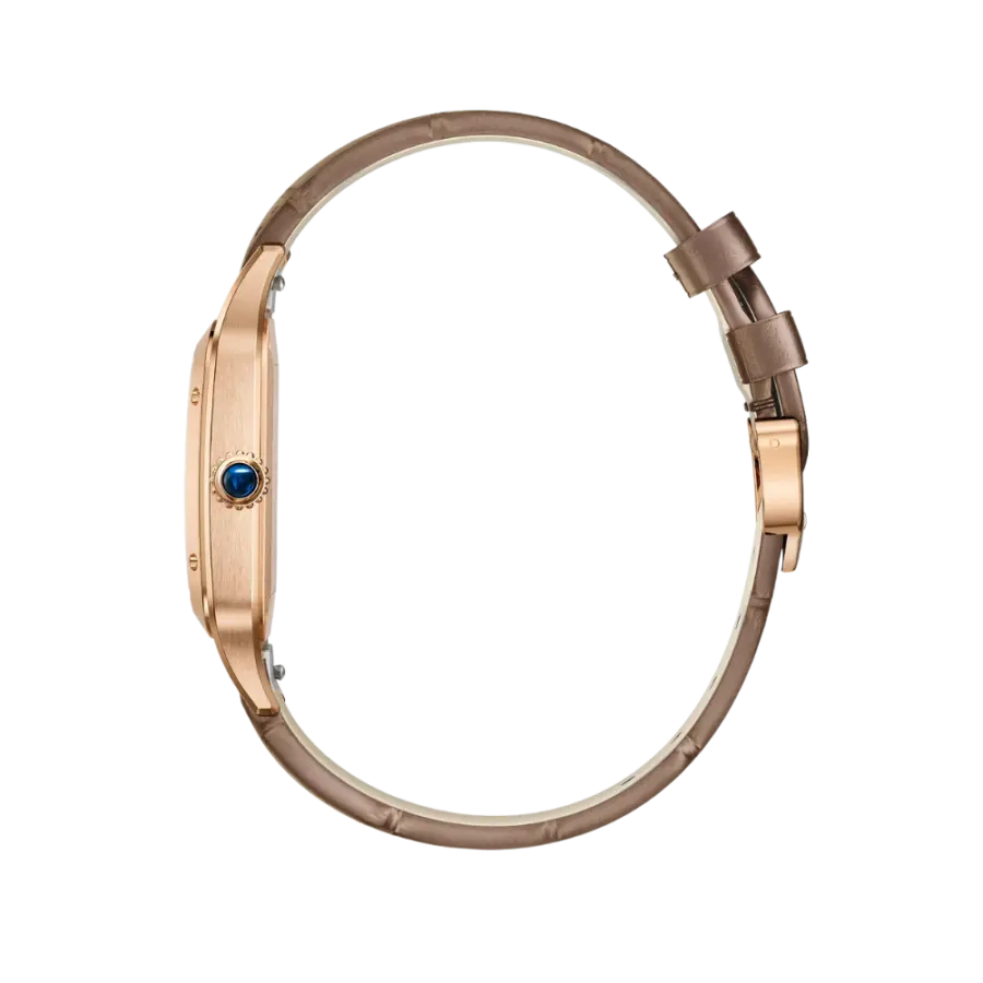 The Santos-Dumont watch Ref. WGSA0112 continues the legacy of one of the first pilot’s watches ever created, originally designed in 1904 for aviation pioneer Alberto Santos-Dumont. Its refined proportions, diamond-set bezel, and luxurious rose gold construction elevate this historic design into a piece of contemporary haute horlogerie. Both elegant and iconic, it is perfect for those who seek timeless sophistication with Cartier’s unmistakable style.