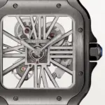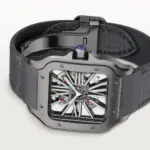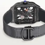 The Santos de Cartier Large Skeleton Steel & Black ADLC Watch is a captivating fusion of high horology, avant-garde aesthetics, and Cartier’s timeless design heritage. Designed for connoisseurs of modern watchmaking, this skeletonized timepiece exposes the intricate beauty of its mechanical movement — offering an open-worked dial that’s both daring and refined.