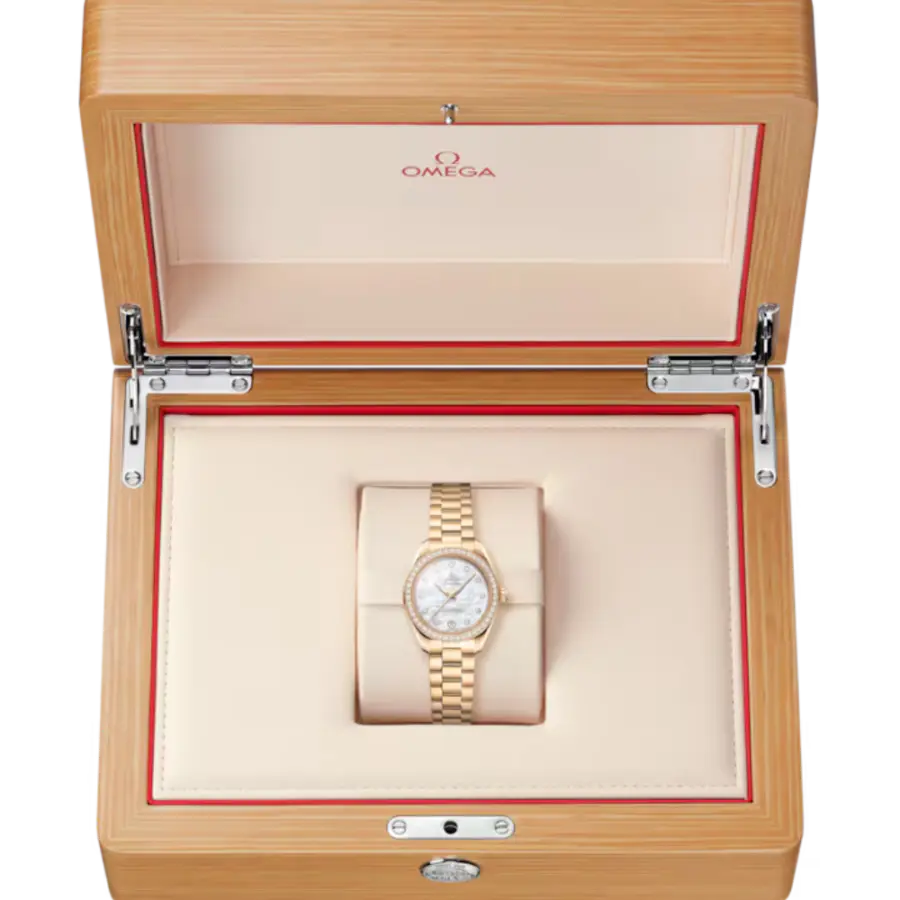 The Seamaster Aqua Terra 150M 30 mm Moonshine™ Gold with Diamonds represents the ultimate union of Omega’s dive-inspired design and fine jewelry artistry. With its diamond-set construction and Master Chronometer movement, it is a rare treasure for collectors who desire uncompromising beauty and horological mastery.