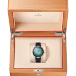 - Dial: Blue sun-brushed dial with horizontal “teak” motif; rhodium-plated hands & indexes filled with Super-LumiNova; date window at 6 o’clock.